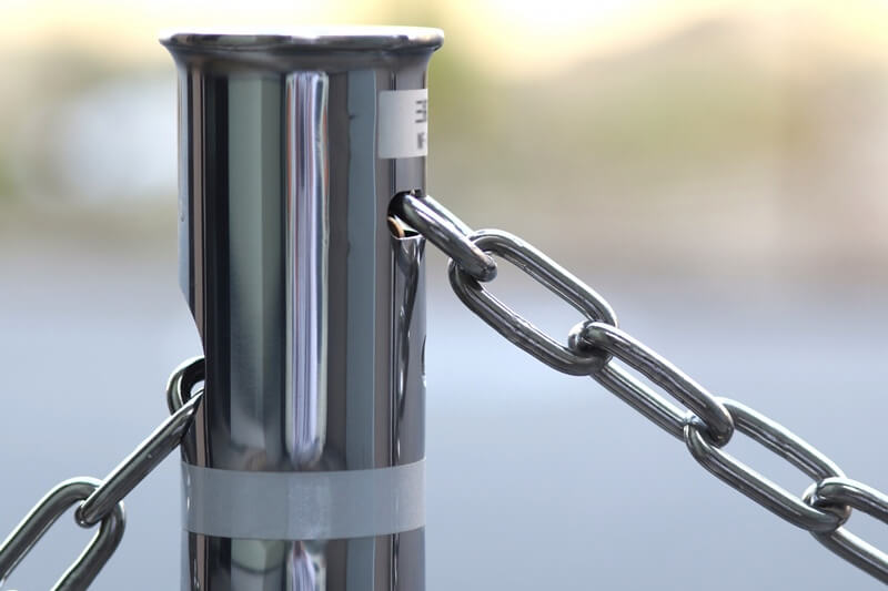 素材はステンレス製や防錆加工された素材が腐食に強く、おすすめです。また、定期的な点検でチェーンやポールの埋め込み部分に錆びがないか、チェーンに緩みはないか確認すると、劣化を早期発見できます。