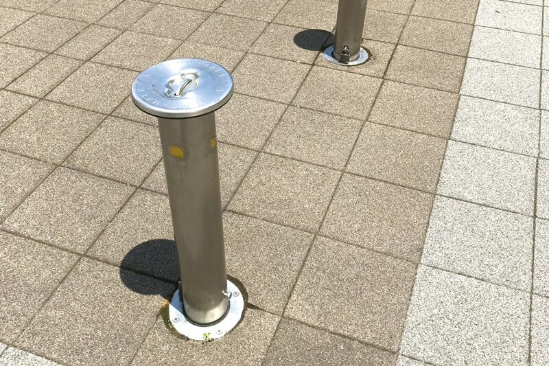 固定式はポールを地面に固定するタイプです。モルタルで完全に固定するため、取り外しできません。そのため、車の通行を防ぐと同時に人や自転車が通れるようにする場所などの設置に適しています。