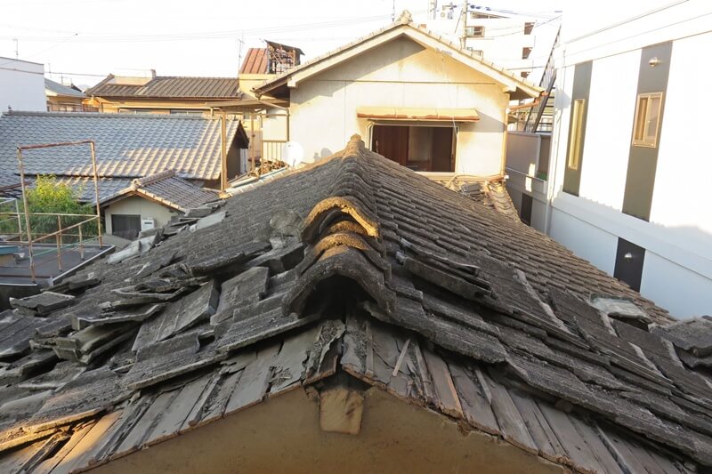 まずは手作業で内装を解体します。サッシや建具、石膏ボード、畳などを撤去します。次に屋根の撤去です。瓦屋根の場合は1枚ずつ剥がしていきます。リサイクルするためにほかの素材と混ざらないよう、手間がかかりますが手作業で行います。