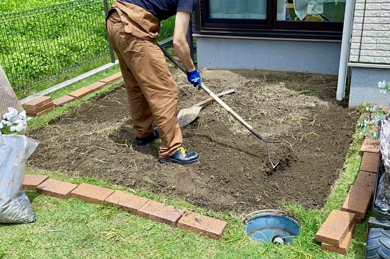 地面をしっかり整地する