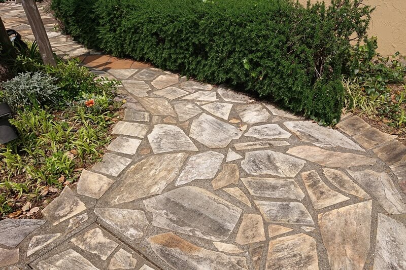 スタンプコンクリートは地面をコンクリートで完全に覆うため、雑草の心配はほぼなくなります。レンガやインターロッキングのように目地が多くなく、砂利敷きのように表面に砂が溜まることもありません。